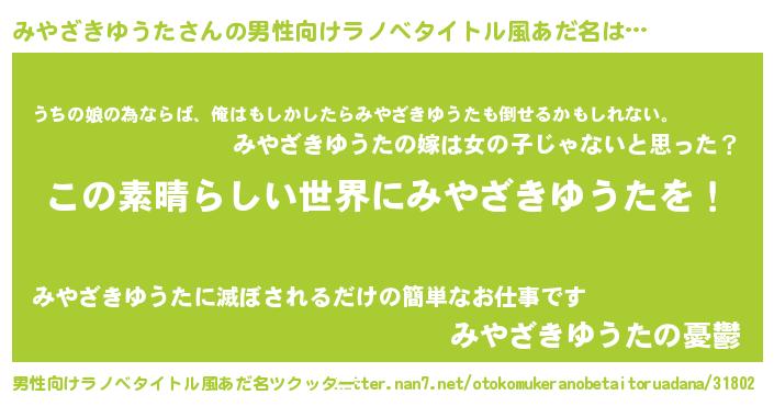 | 胡散臭い通販商品みたいなあだ名 | 『あなたにだけ特別に提供する100年もののヴィンテージワイン…その名も「みやざきゆうた」』 |