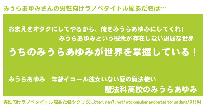 みうらあゆみさんの男性向けラノベタイトル風あだ名をツクッター!
