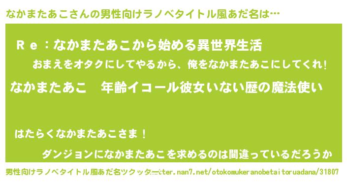 | 女子向けラノベタイトル風あだ名 | 『なかまたあこの玉の輿計画!』 |