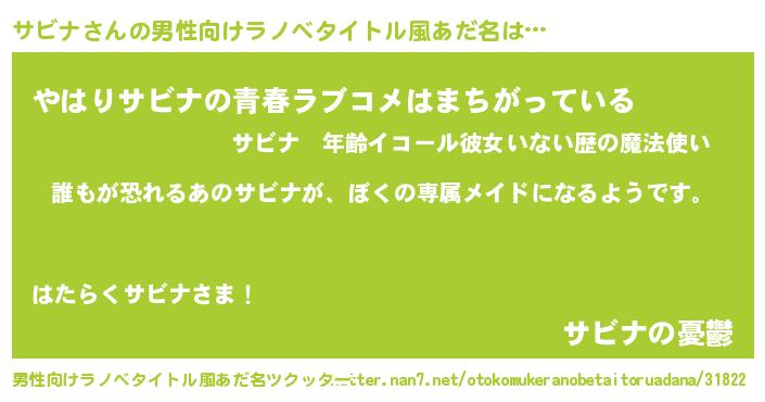 | ファンタジー風あだ名 | 『サビディッシュ』『エターナルサビナー』 |