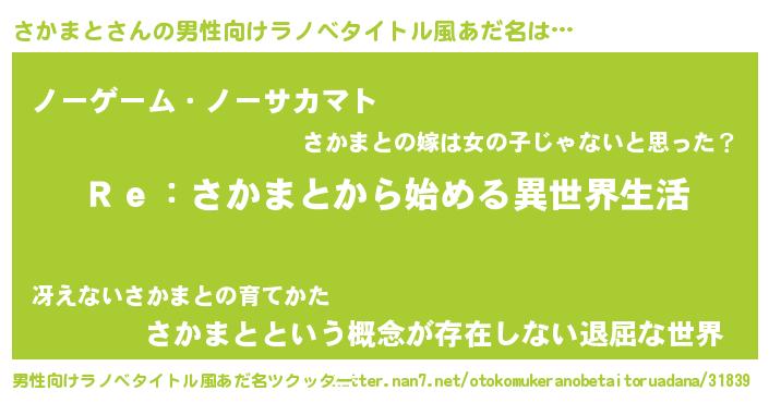 | 意味不明あだ名 | 『自称さかまと』『永久保存さかまと』 |