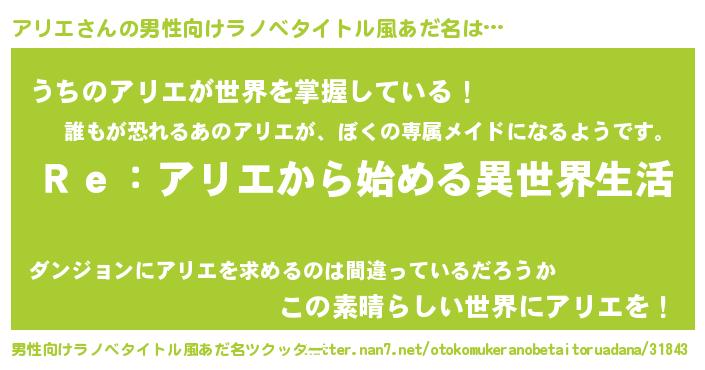 | 女子向けラノベタイトル風あだ名 | 『アリエストレイドッグス』 |