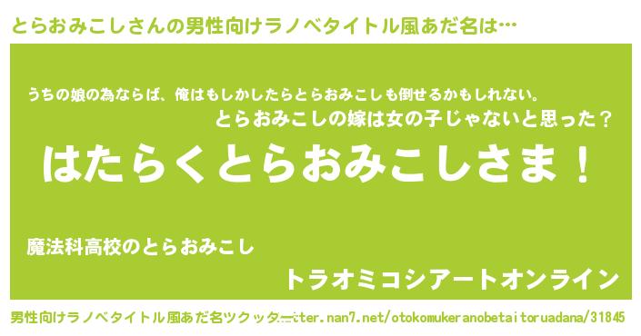 | 女子向けラノベタイトル風あだ名 | 『首の姫と首なしとらおみこし』 |