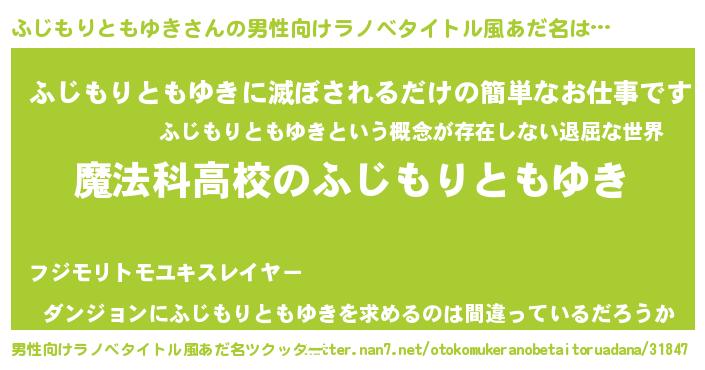 | 肩書あだ名 | 『ふじもりともゆき総統』 |