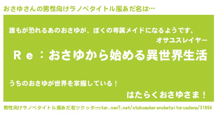 | 意味不明あだ名 | 『自称おさゆ』『永久保存おさゆ』 |