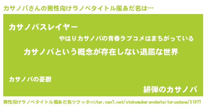 | 胡散臭い通販商品みたいなあだ名 | 『絶対に幸福をもたらす健康食品…その名も「カサノバ」』 |
