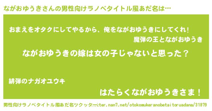| 女子向けラノベタイトル風あだ名 | 『ながおゆうき様がみてる』 |