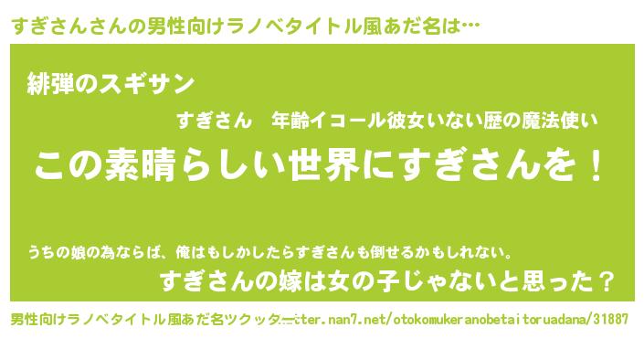 | 胡散臭い通販商品みたいなあだ名 | 『世界中を虜にした100年もののヴィンテージワイン…その名も「すぎさん」』 |