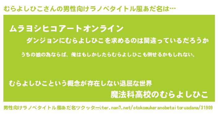 | 胡散臭い通販商品みたいなあだ名 | 『世界が平和になる高級そうな絵画…その名も「むらよしひこ」』 |