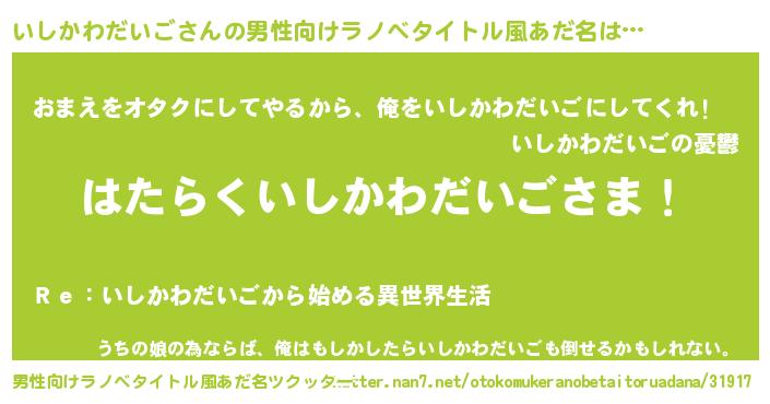 | 胡散臭い通販商品みたいなあだ名 | 『お金では代えられないマグネット磁石…その名も「いしかわだいご」』 |