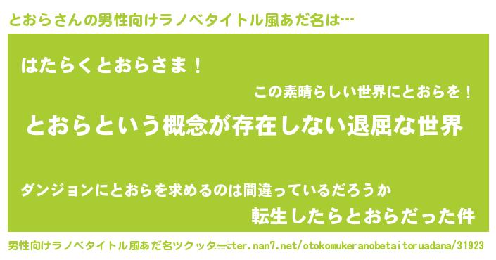 | ヘコむあだ名 | 『とおら(小並感)』『とおっちょ』 |