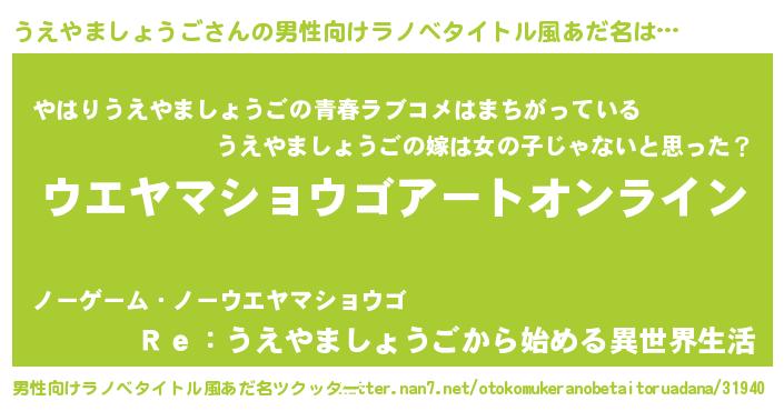 | 女子向けラノベタイトル風あだ名 | 『うえやましょうご姫と円卓の騎士』 |