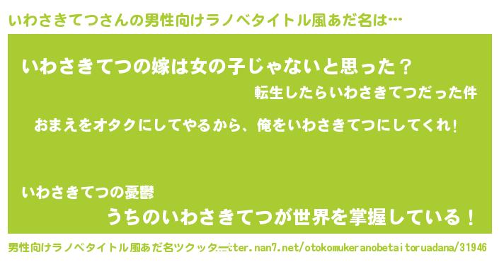 | 女子向けラノベタイトル風あだ名 | 『いわさきてつ夫妻のなれそめ』 |