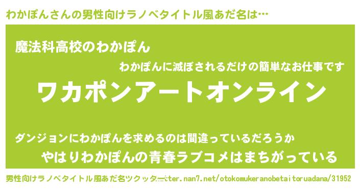 | 意味不明あだ名 | 『ペロリンわかぽん』『自称わかぽん』 |