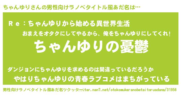| 意味不明あだ名 | 『ペロリンちゃんゆり』『自称ちゃんゆり』 |