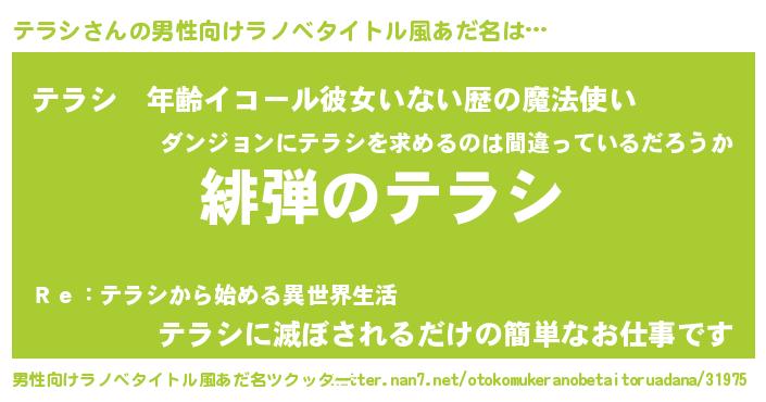 | 胡散臭い通販商品みたいなあだ名 | 『信頼と実績のネックレス…その名も「テラシ」』 |