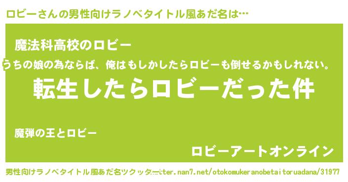| ヘコむあだ名 | 『ロビにゅー』『酢こんぶ』 |