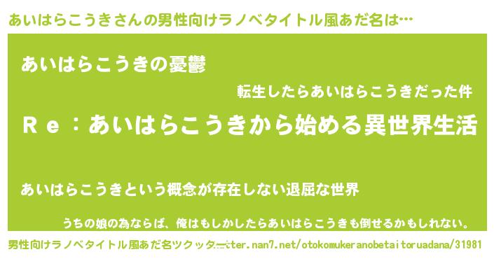 | 意味不明あだ名 | 『自称あいはらこうき』 |