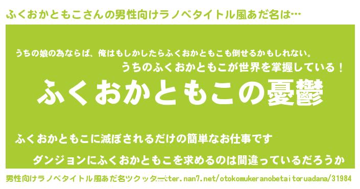 | 女子向けラノベタイトル風あだ名 | 『ふくおかともこ姫と円卓の騎士』 |