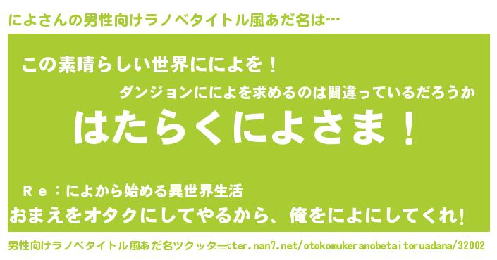 | 意味不明あだ名 | 『住所不定無職によ(9歳)』『自称によ』 |