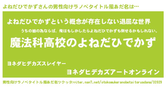 | 女子向けラノベタイトル風あだ名 | 『よねだひでかずなんてお断りですっ。』 |