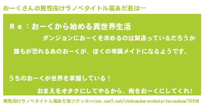 | 女子向けラノベタイトル風あだ名 | 『異世界でカフェおーくを開店しました。』 |