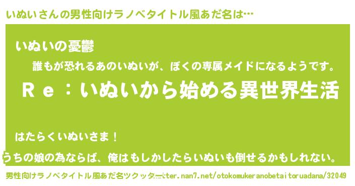 | 意味不明あだ名 | 『自称いぬい』『ペロリンいぬい』 |