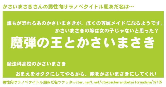 | ヘコむあだ名 | 『かさいまさき(苦笑)』『かさっ子』 |