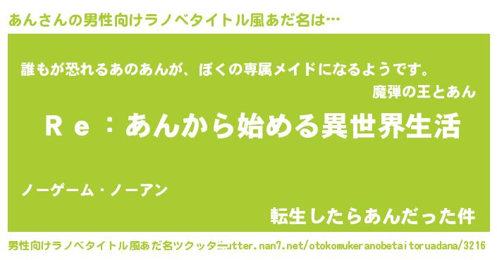 | 意味不明あだ名 | 『自称あん』『永久保存あん』 |
