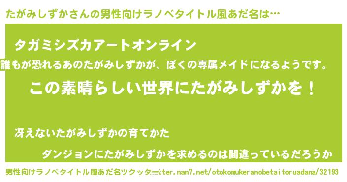 | 意味不明あだ名 | 『住所不定無職たがみしずか(5歳)』 |