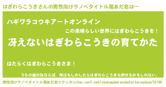 | 胡散臭い通販商品みたいなあだ名 | 『モテモテ間違いなし霊験あらたかなお札…その名も「はぎわらこうき」』 |