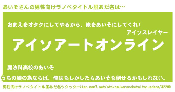 | ヒーロー風カッコイイあだ名 | 『スーパーアイソ』『友情の使者あいそ』 |