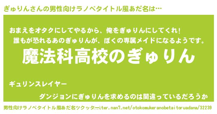 | 女子向けラノベタイトル風あだ名 | 『ぎゅりんアンティーク』 |