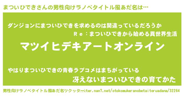 | 女子向けラノベタイトル風あだ名 | 『誰かこのまついひできを説明してください! ~契約から始まるウェディング~』 |