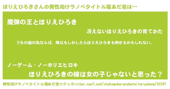 | 女子向けラノベタイトル風あだ名 | 『ほりえひろきの婚約者』 |