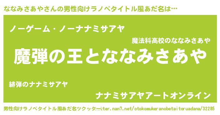 | 女子向けラノベタイトル風あだ名 | 『ななみさあやが死なない童話 林檎のななみさあやの診療簿』 |