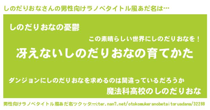 | 胡散臭い通販商品みたいなあだ名 | 『モテモテ間違いなし霊験あらたかなお札…その名も「しのだりおな」』 |
