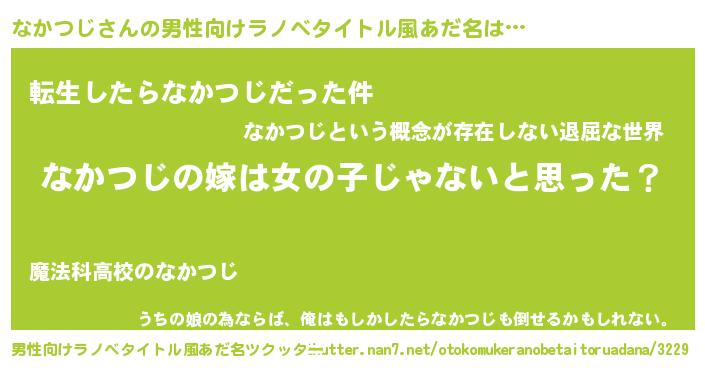 | 女子向けラノベタイトル風あだ名 | 『なかつじ様がみてる』 |