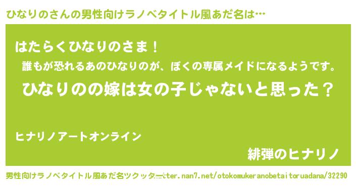 | 女子向けラノベタイトル風あだ名 | 『ひなりのの卵を拾いまして』 |