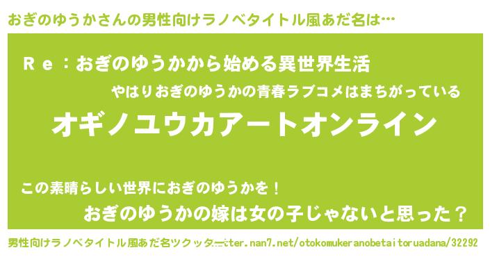 | 肩書あだ名 | 『おぎのゆうか社長』『おぎのゆうか閣下』 |