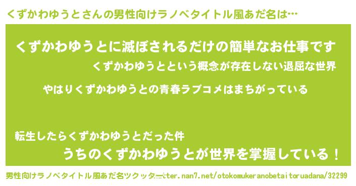 | 女子向けラノベタイトル風あだ名 | 『くずかわゆうとの雑貨屋さん』 |