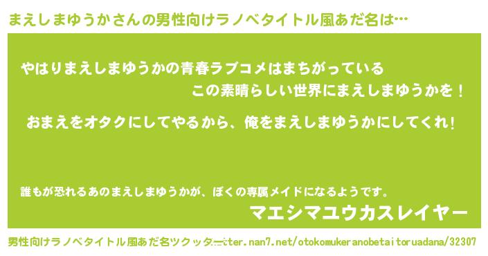 | 胡散臭い通販商品みたいなあだ名 | 『100人中100人が認めたマグネット磁石…その名も「まえしまゆうか」』 |