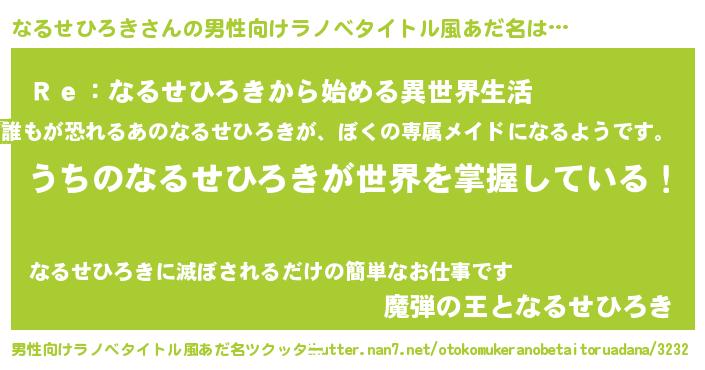 | ヘコむあだ名 | 『なるせひろき(小並感)』『なるっ子』 |