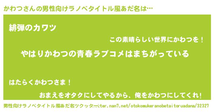 | 女子向けラノベタイトル風あだ名 | 『かわつの雑貨屋さん』 |