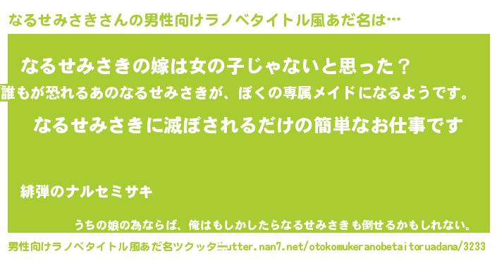 | 胡散臭い通販商品みたいなあだ名 | 『伝統あるペンダント…その名も「なるせみさき」』 |
