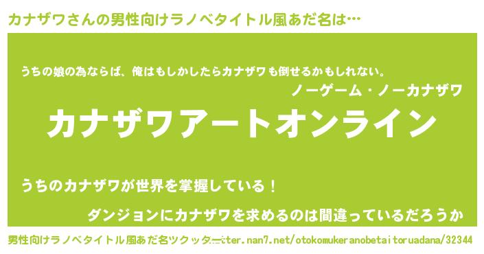| 女子向けラノベタイトル風あだ名 | 『誰かこのカナザワを説明してください! ~契約から始まるウェディング~』 |