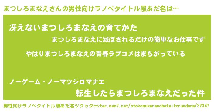 | 胡散臭い通販商品みたいなあだ名 | 『世界が平和になる高級そうな絵画…その名も「まつしろまなえ」』 |