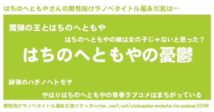 | 女子向けラノベタイトル風あだ名 | 『(仮)はちのへともやのやんごとなき事情』 |