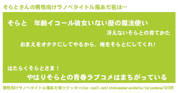 | 胡散臭い通販商品みたいなあだ名 | 『100人中100人が認めたマグネット磁石…その名も「そらと」』 |
