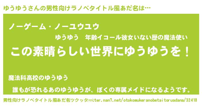 | ヒーロー風カッコイイあだ名 | 『仮面ユウダー』『愛の使者ゆうゆう』 |
